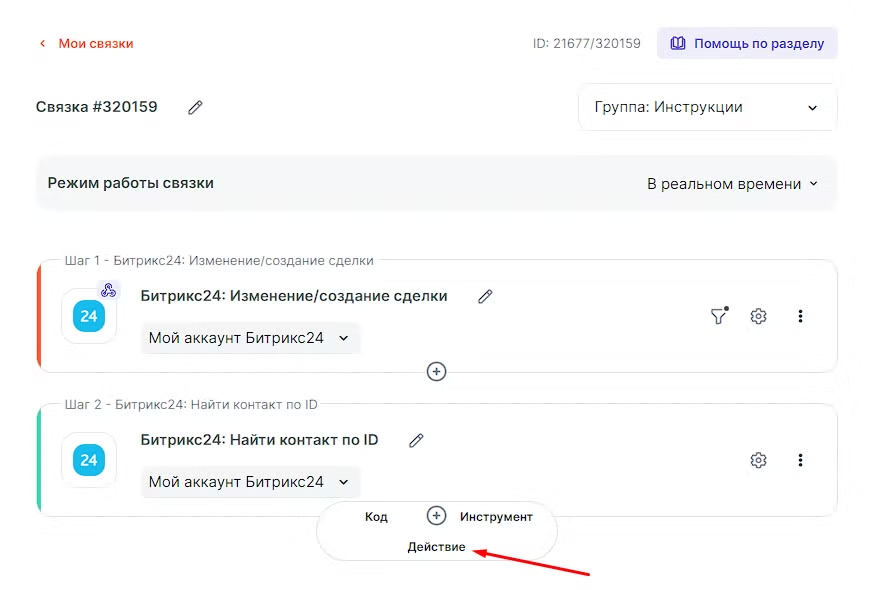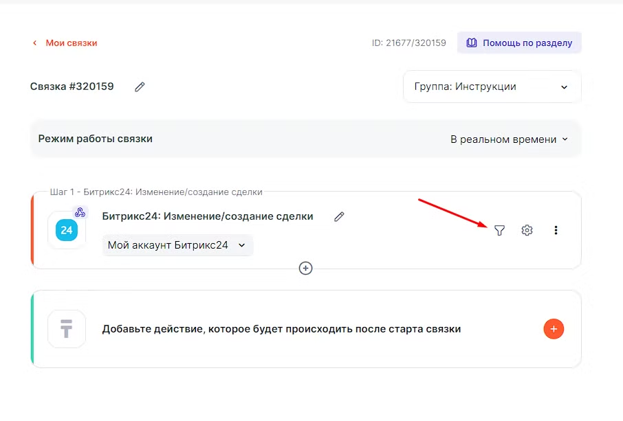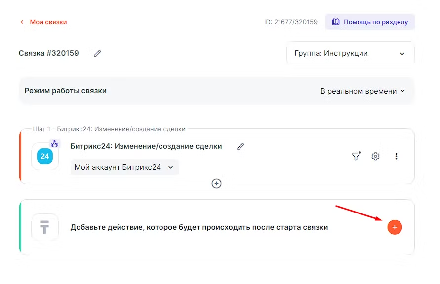 Теперь связка будет проходить по каждому товару из раздела “Товары” в Bitrix24.