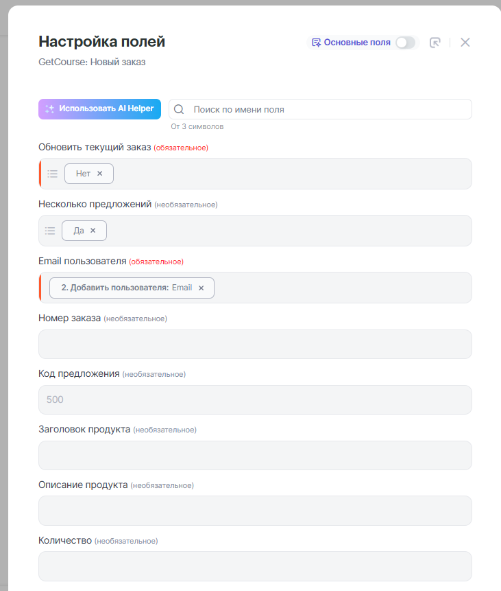 На этом шаге создаётся заказ в GetCourse, который будет связан с ранее добавленным пользователем.