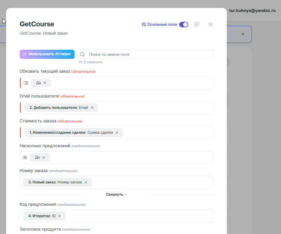Так связка создаст отдельный заказ в GetCourse для каждого товара из сделки Bitrix24.