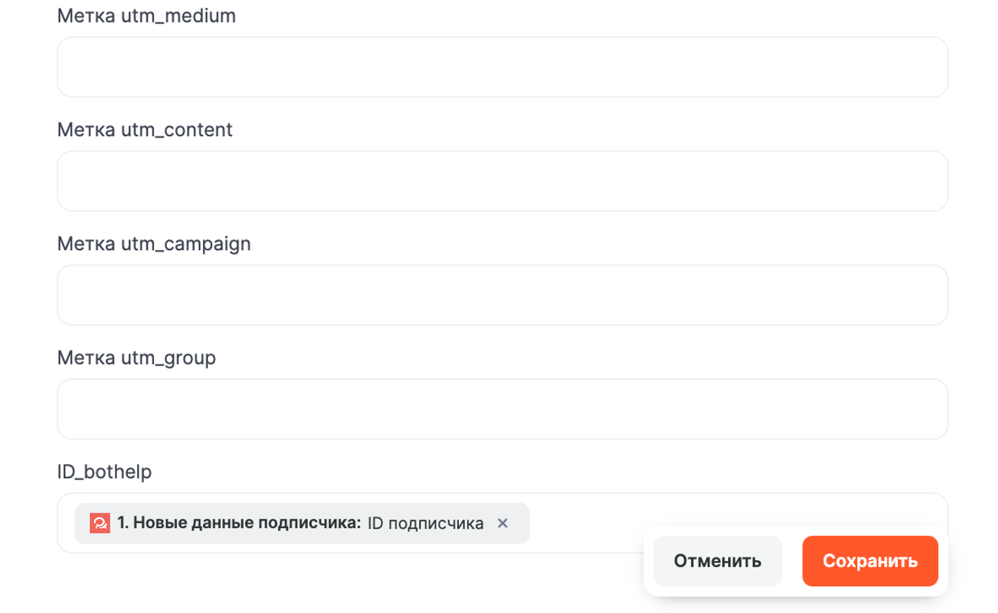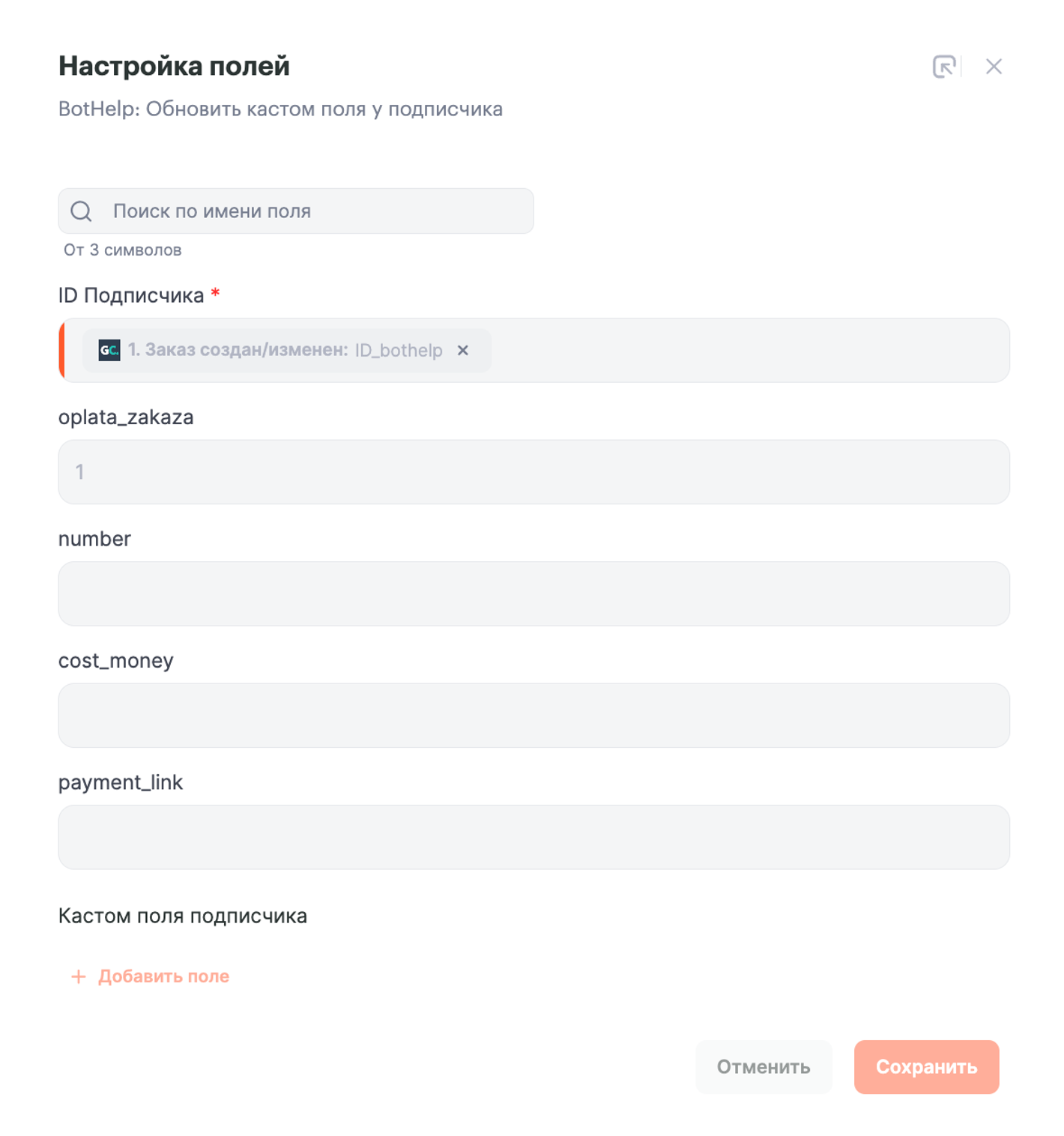 Заполняем ранее созданное в подключении Bothelp кастомное поле: