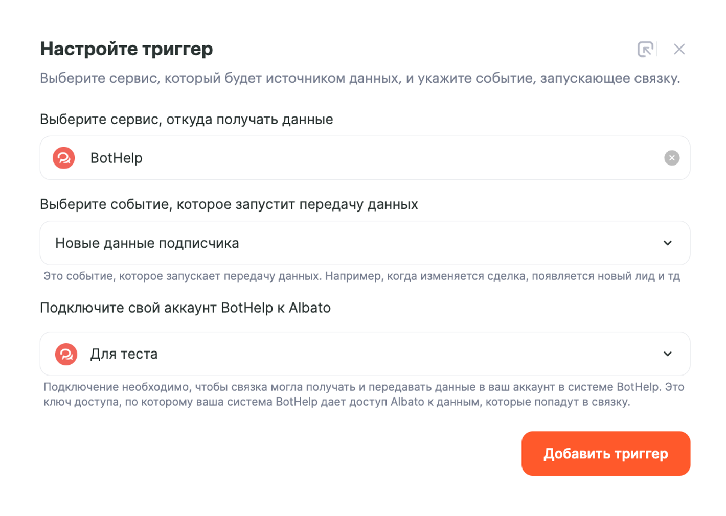 - Сервис, из которого будем передавать данные — Bothelp