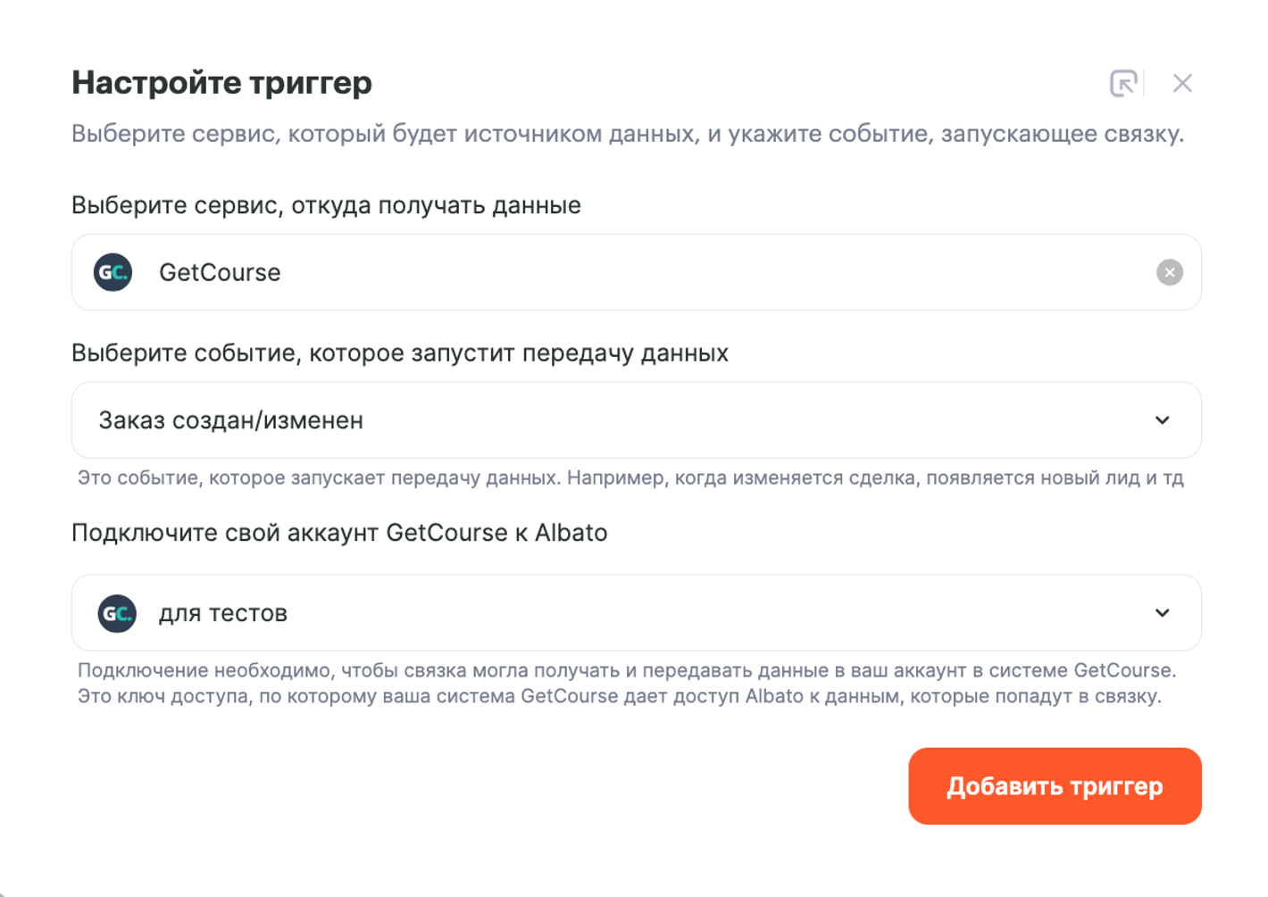 - Сервис, из которого будем передавать данные — Getcourse.