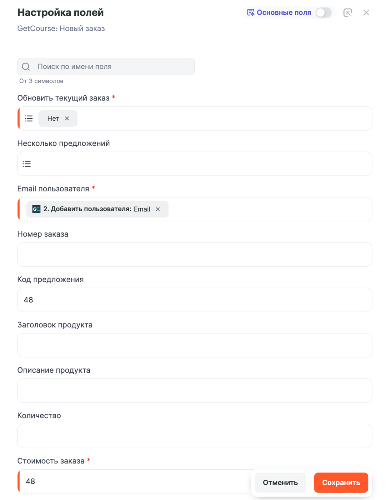 - oplata_zakaza — условно ставим 1, либо другое значение. Таким образом мы идентифицируем, что заказ в Getcourse оплачен
