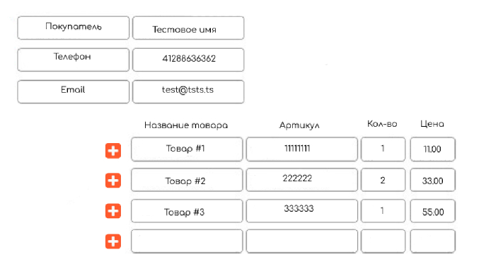 В нашем примере эта сущность — заказ, а строковые секции это товары заказа, такие можно встретить из WooCommerce, Tilda, Ecwid и др.