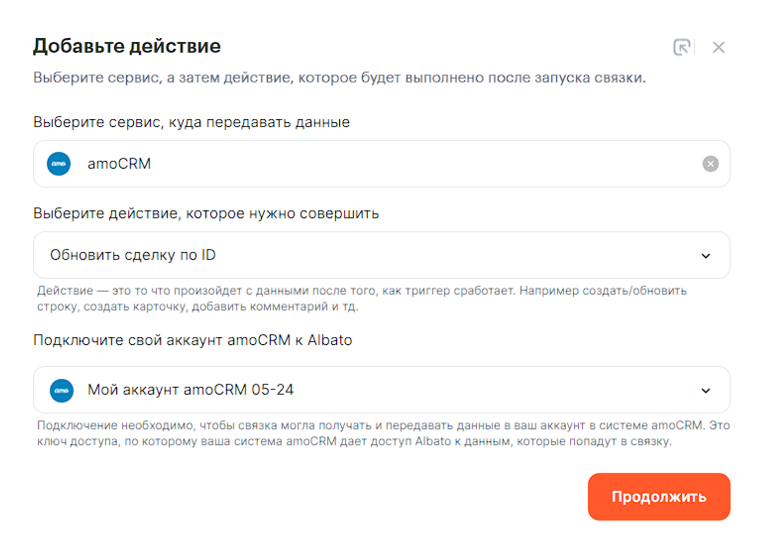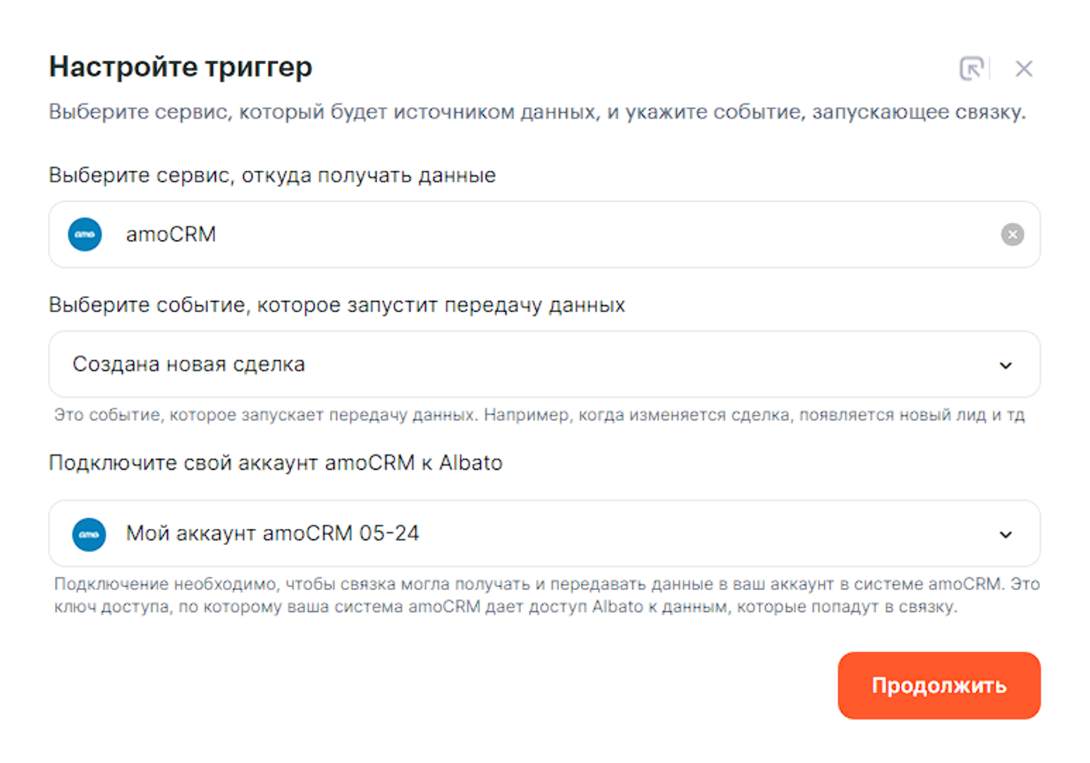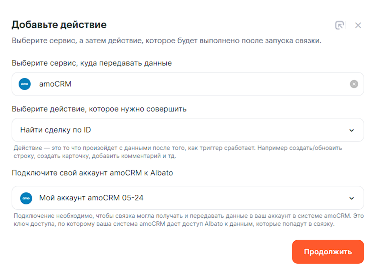 Перед созданием связок убедитесь. что оба сервиса подключены к Albato.