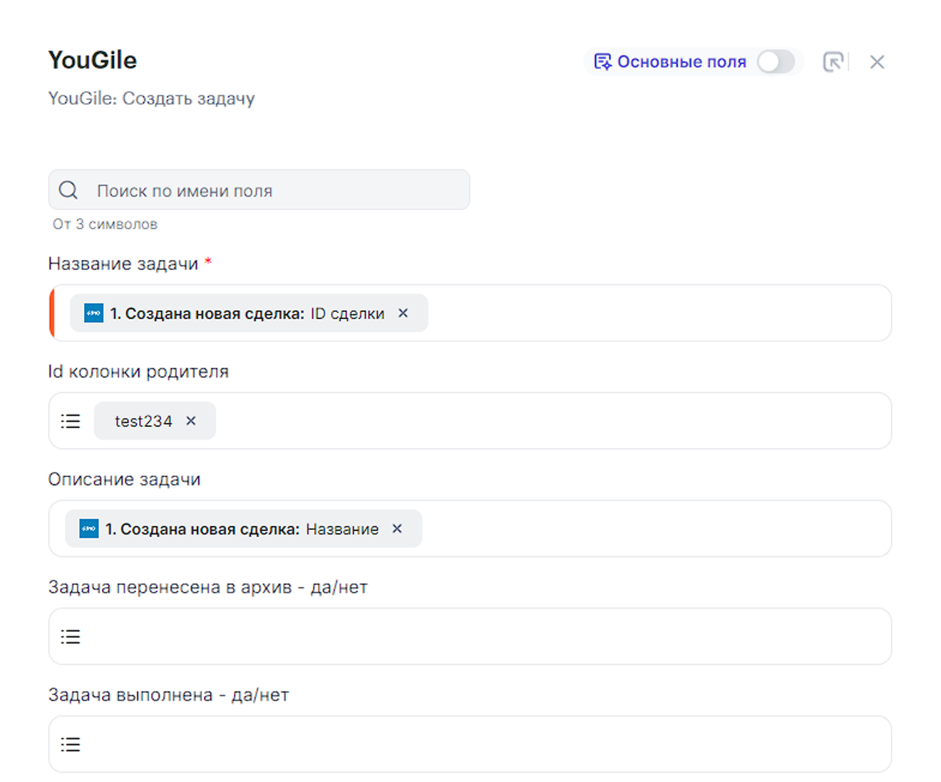 - ID задачи в yougile — параметр ID задачи из шага 1
