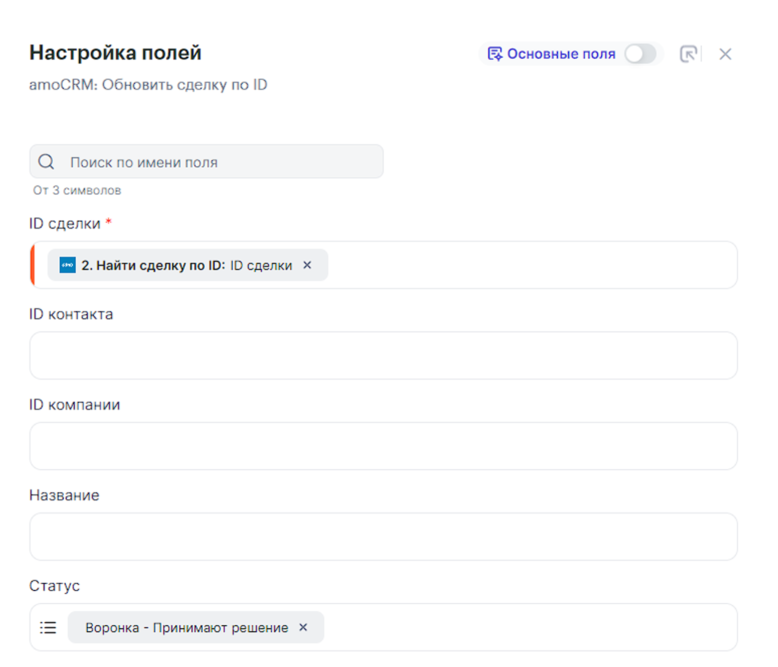 В данной инструкции рассмотрим кейс: при создании новой сделки на определенном статусе в AmoCrm будет создана новая задача в YouGile, а при обновлении задачи — обновляться статус сделки или создается новая. Для этой задачи — В AmoCrm нужно создать кастомное поле для передачи ID задачи.