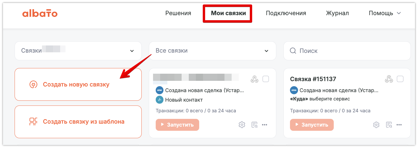 Сперва создадим саму связку. Для этого в разделе «Мои связки», выберите «Создать новую связку»: