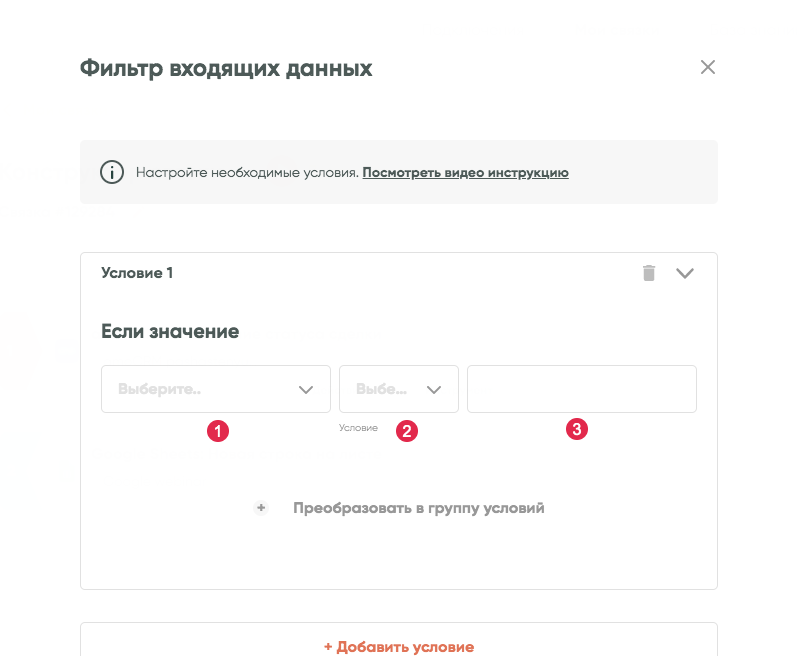 1. Выберите то поле передающего сервиса, по которому фильтр будет проверять условие.