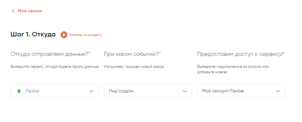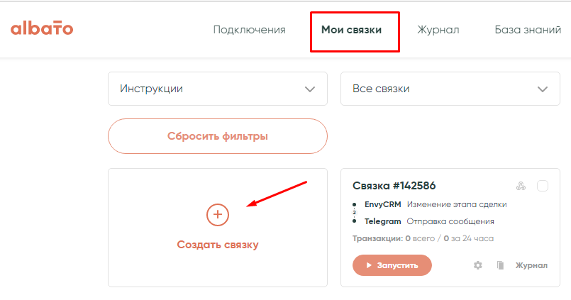 Выполним настройку связки, которая при получении нового лида во Flexbe будет создавать контакт в amoCRM и ставить задачу на менеджера. Дня начала убедитесь, что оба сервиса подключены к Albato.