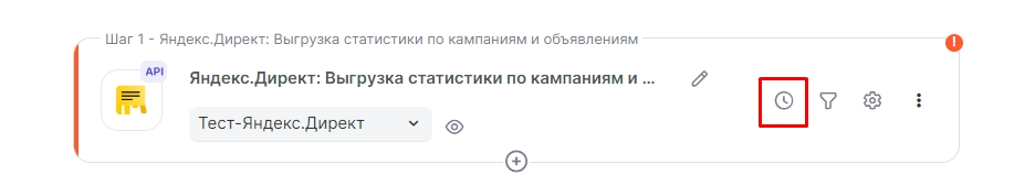 Данную настройку можно произвести только для связок работающих по API. Такие связки имеют соответствующую иконку в карточке связки на главном экране, это означает то, что Альбато делает запросы к стороннему серверу и собирает новые данные. По-умолчанию частота запросов составляет 5 минут. Настроить нужную вам частоту запросов и время запуска связки можно в Графике запуска.