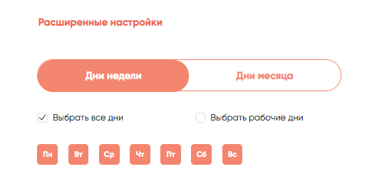 В расширенных настройках можно дополнительно указать в какие дни недели