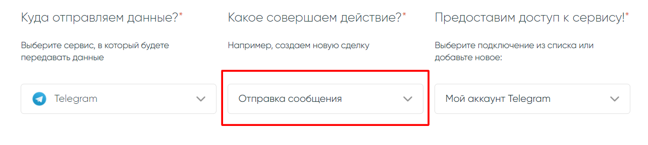Дальше вы выбираете, куда отправлять данные, например, в Telegram.