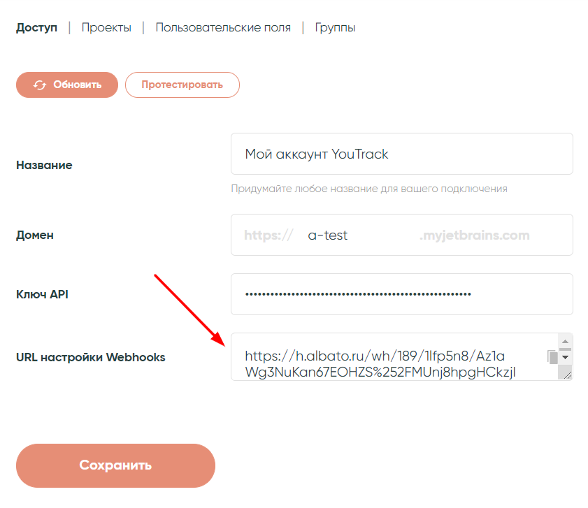 Подключение YouTrack к Albato
