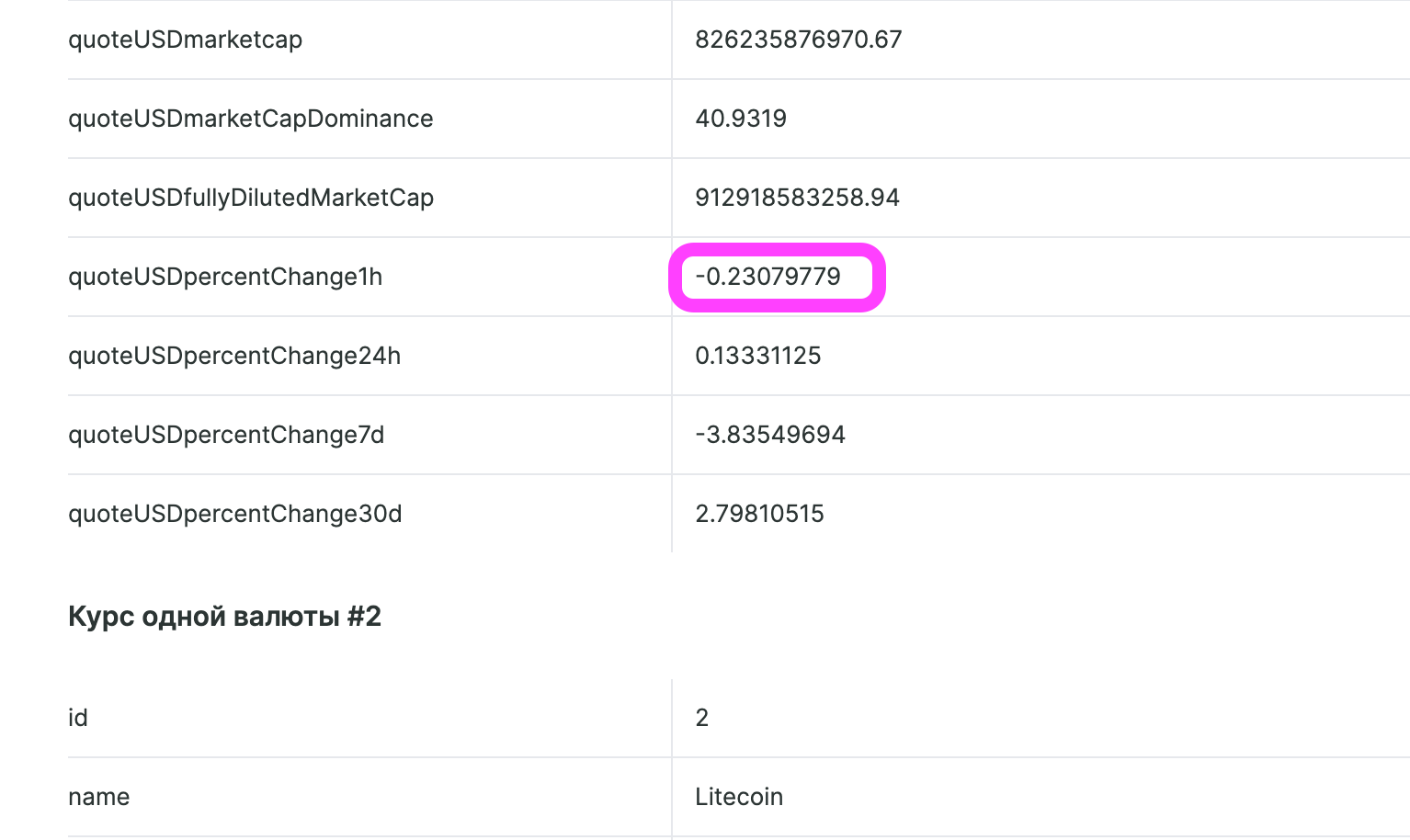 Данные об изменении курса из CoinMarketCup приходят не в самом удобном формате — в виде обычных чисел.