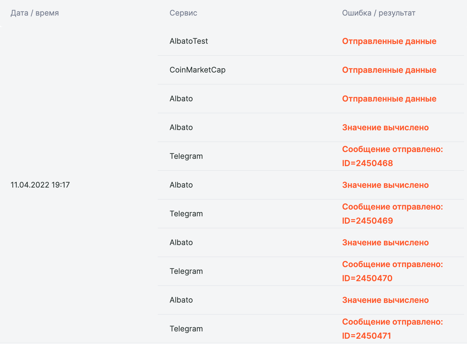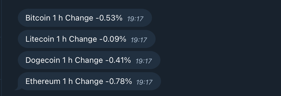 Сохраним настройки. Теперь можно запускать связку. Данные будут приходить только по тем криптовалютам, у которых изменение за последний час больше чем на 1%.