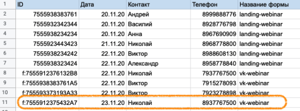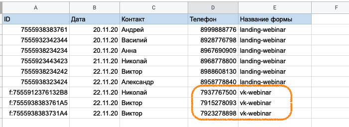 Допустим, вы собираете лиды на мероприятие из разных источников в Google Sheets. Одна из ваших форм (пусть это будет VK) передает телефонный номер в отличном от других источников формате. Чтобы это исправить, необходимо изменить префикс с «7» на «8». Сделаем это с помощью инструмента «Найти и заменить»: