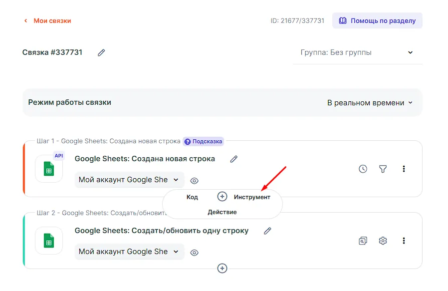 Далее приведем пример настройки инструмента для двух других вариантов: