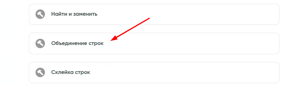 Инструмент «Объединение строк» позволяет объединить «строковую секцию» (массив объектов) из одного шага со «строковой секцией» другого шага в один массив.