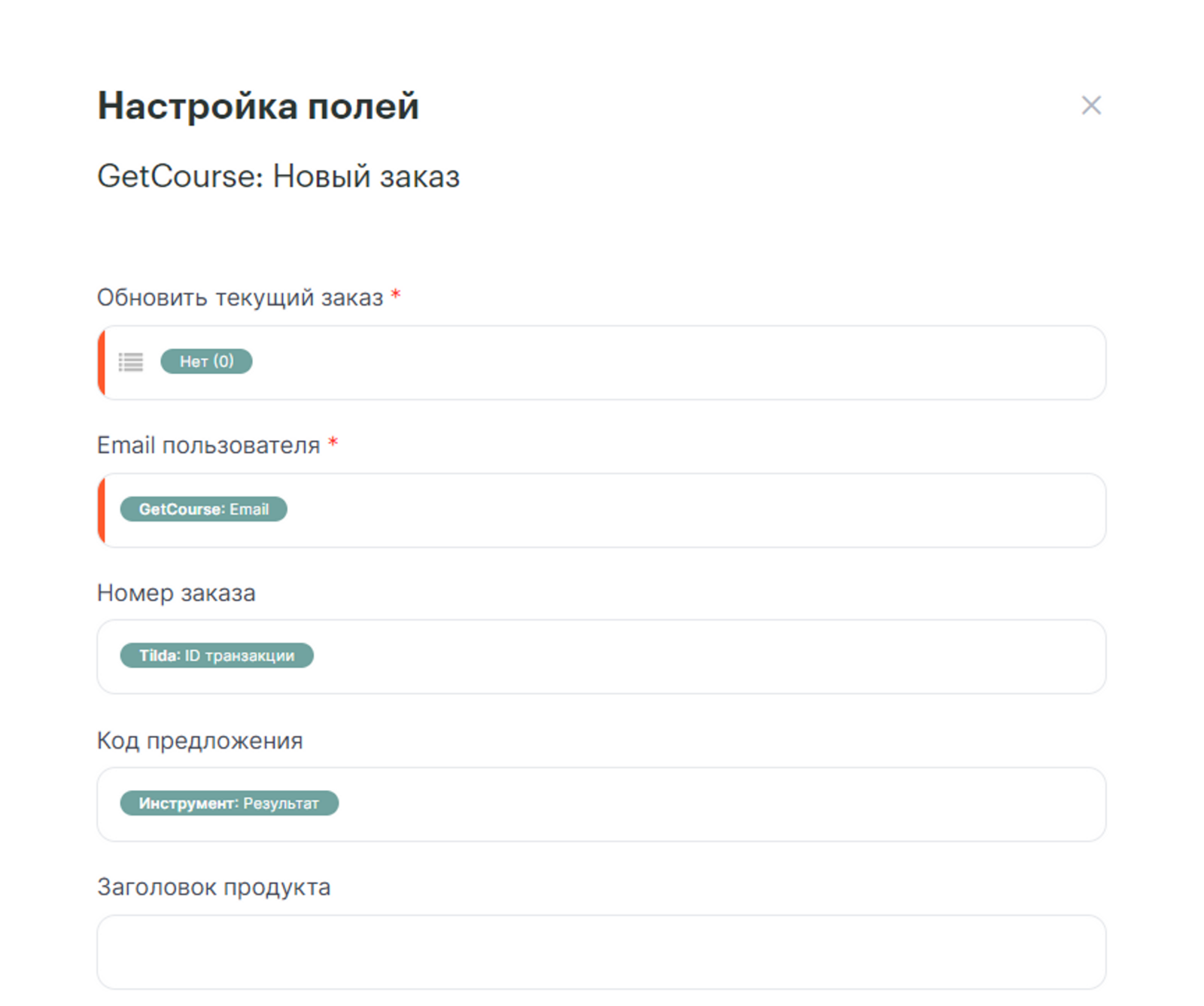 Связка будет получать данные из корзины Тильды и передавать их в Геткурс, где будет создаваться пользователь и заказ к нему по первому товару корзины.