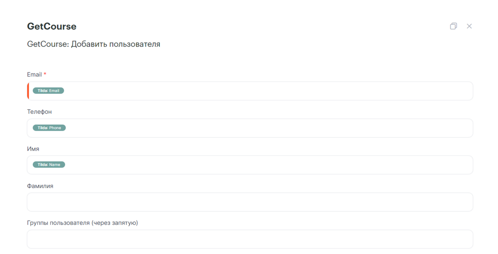 GetCourse — Добавить пользователя — Подключение к GetCourse