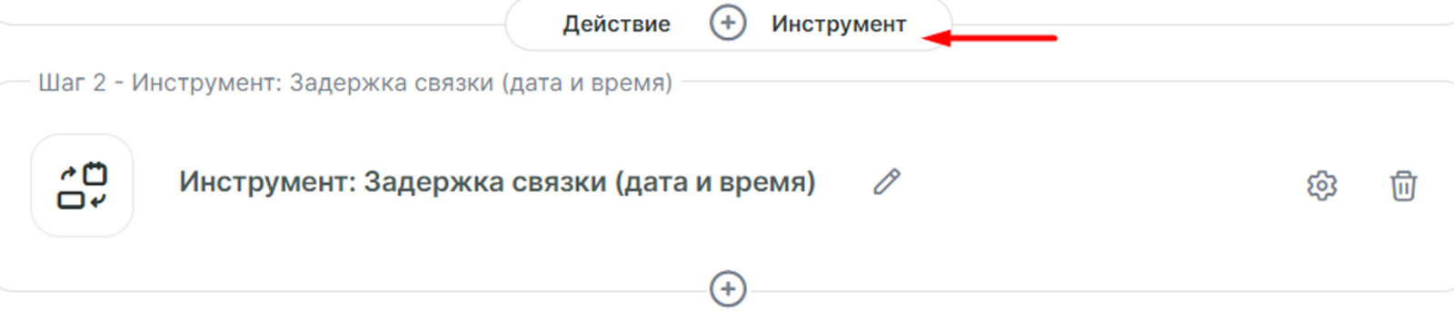 Пример связки с инструментом Задержка связки: