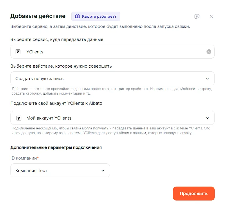 Готово! Связка создана, и теперь её можно запускать. Когда клиент пообщается с ботом и оставит ему свои данные, они будут переданы в YClients, где появится новая запись.