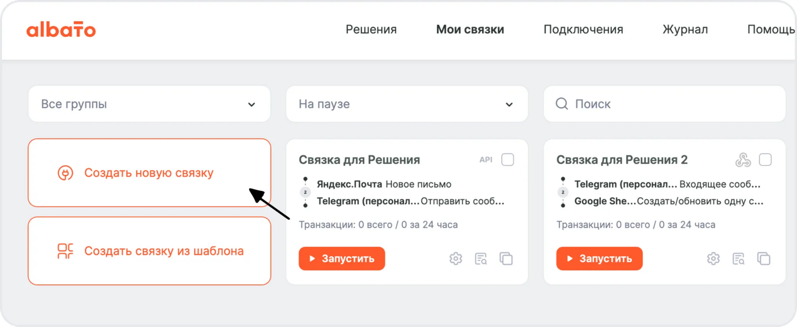 Перед созданием интеграции убедись, что оба сервиса подключены к Albato