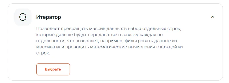 Добавляем инструмент, Итератор: