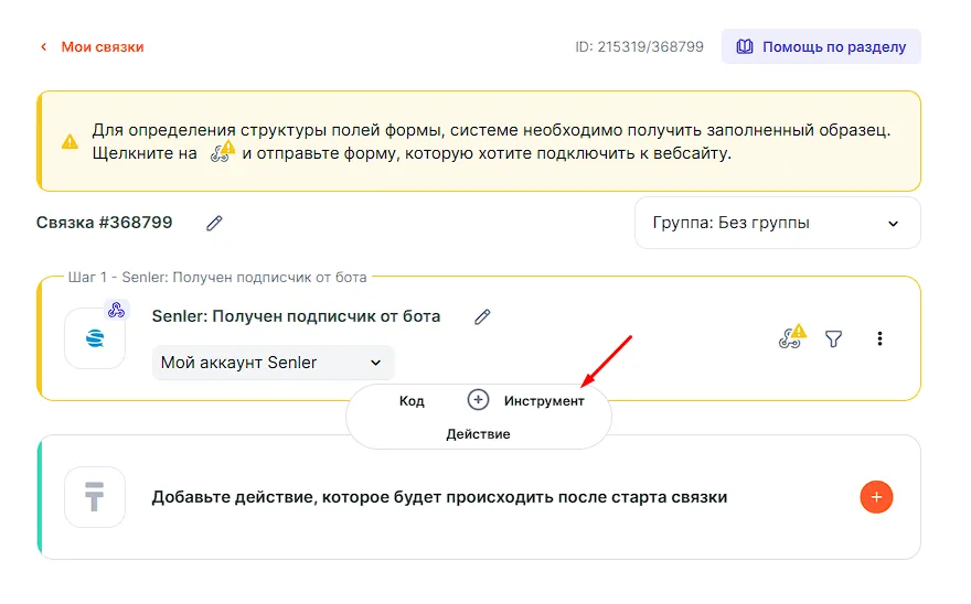 В нашем примере будем использовать Senler и Amocrm