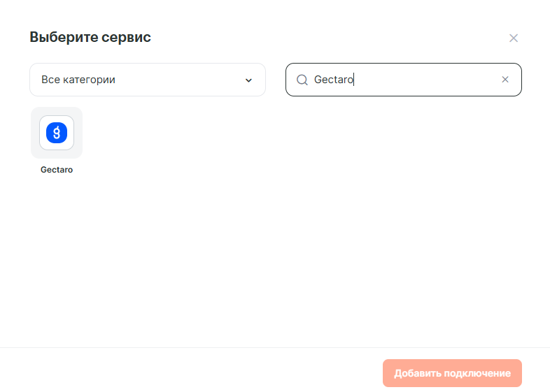 Зайдите в раздел «Подключения», нажмите «Добавить подключение» и выберите из списка сервис Gectaro.