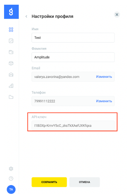Access token вы можете найти в личном кабинете Gectaro. Для этого зайдите в раздел «Профиль» и скопируйте значение из поля API-ключ: