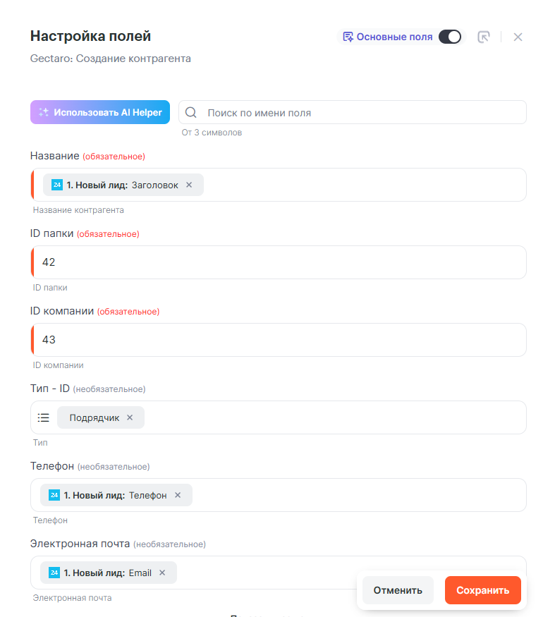Рассмотрим как передавать данные о подрядчике из Битрикс24 в Gectaro.