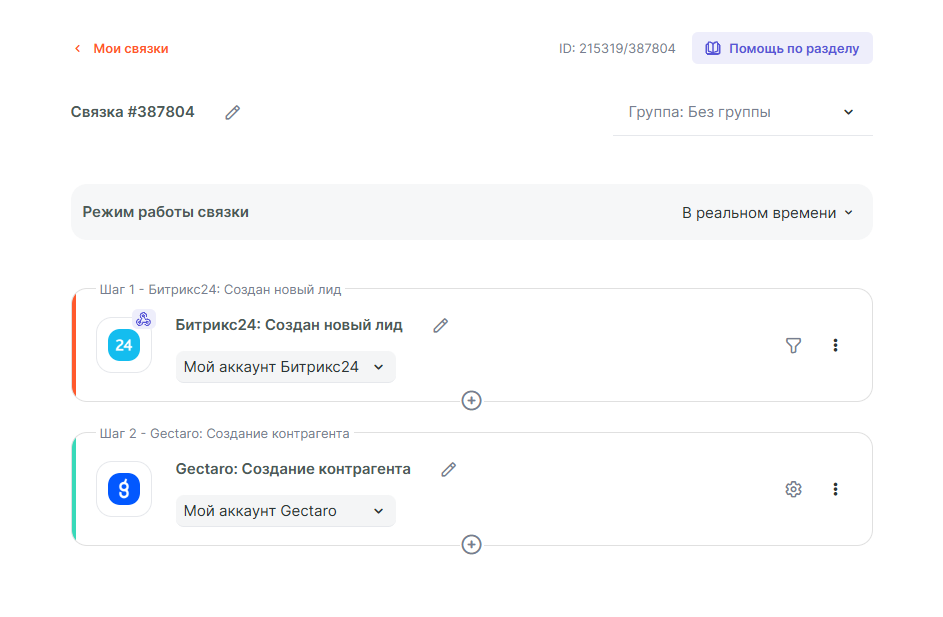 Так же в связку можно добавить и другие действия, которые доступны в интеграции сервиса Gectaro. Если в штатной интеграции сервиса Gectaro нет нужного метода, тогда можно воспользоваться специальным действием кастомный API запрос. Для этого потребуется изучить документацию сервиса.