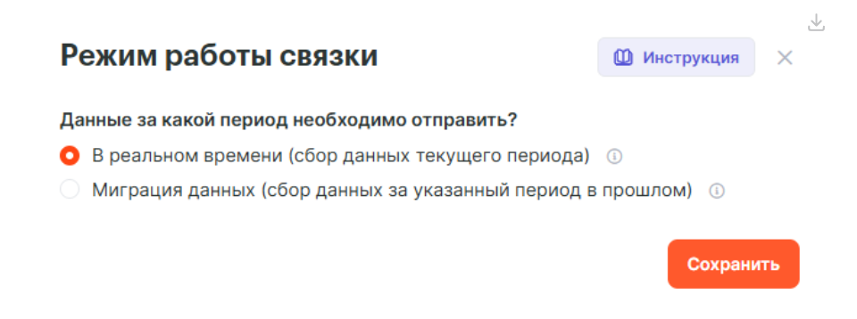 Далее необходимо будет выбрать метод работы триггера, а именно в реальном времени или миграция данных. Что бы лиды передавались сразу, выберем режим «В реальном времени» и нажмём кнопку «Сохранить».