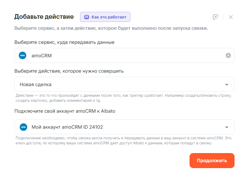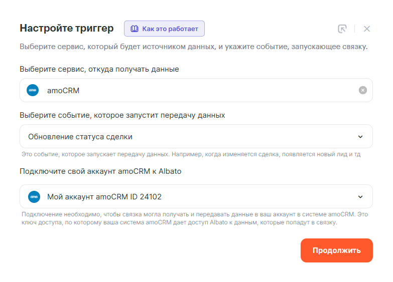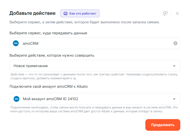 Как подключить amoCRM к Albato: