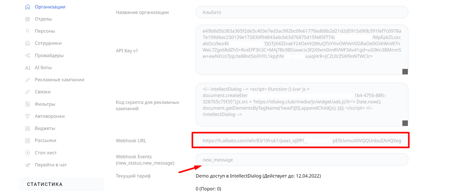 Вернись в личный кабинет IntellectDialog и пропиши вебхук с отслеживаемым событием: