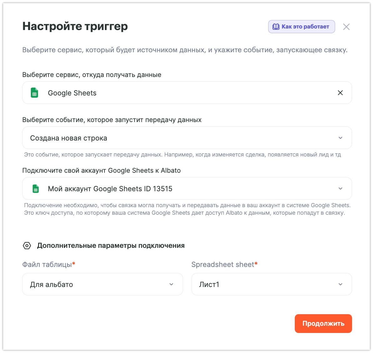 Прежде чем приступить к настройке связки, убедитесь что у вас создано подключение к Google Sheets