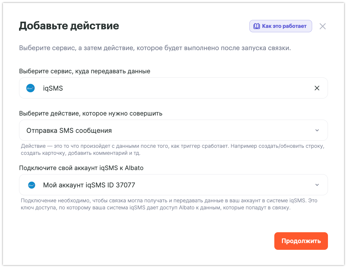 Как подключить IqSMS к Albato