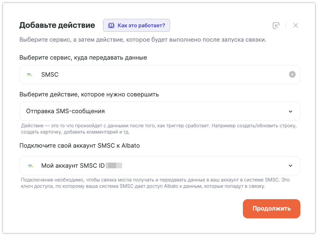 Как подключить SMSC к Albato