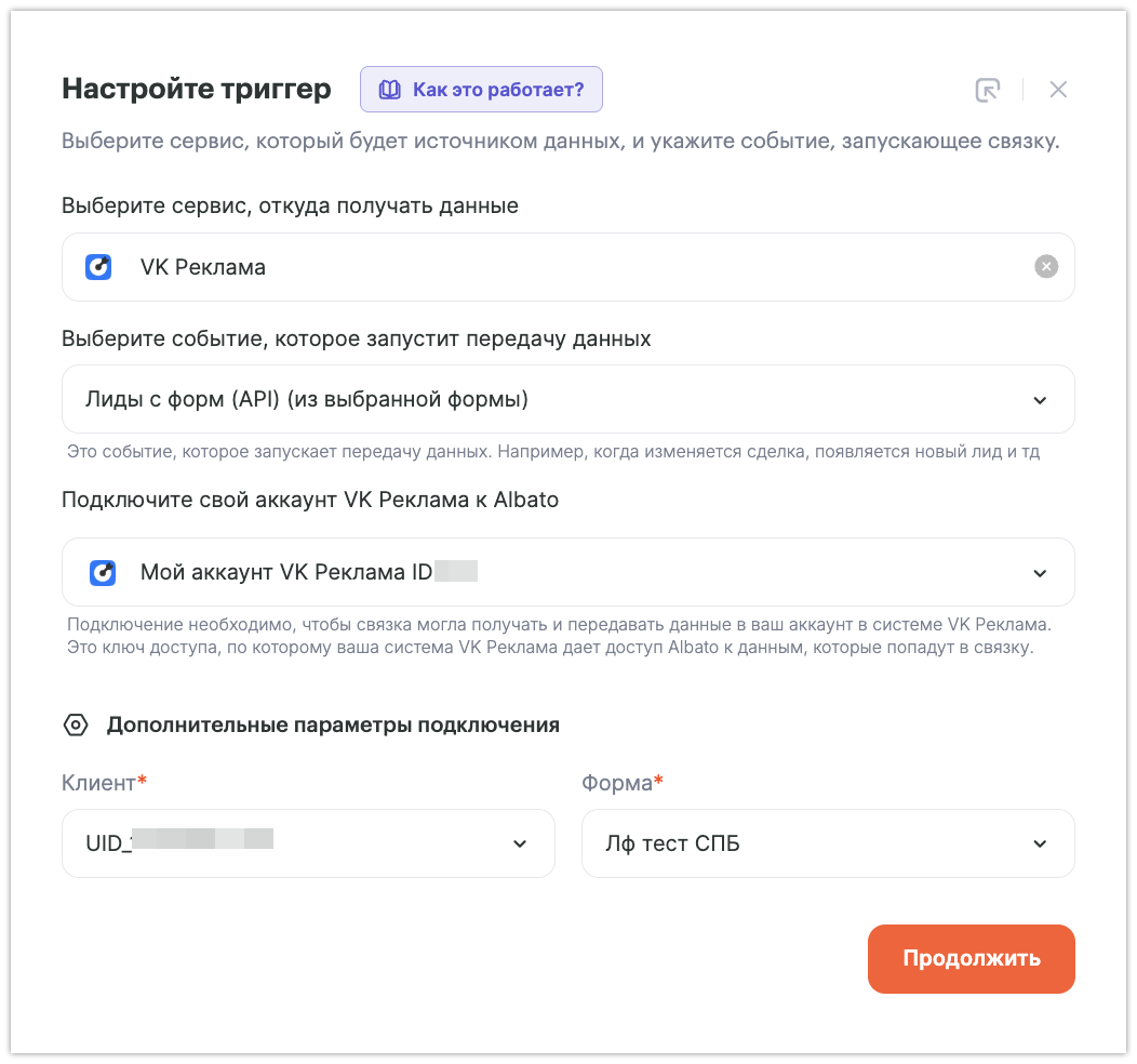 Как подключить VK ads к Albato.