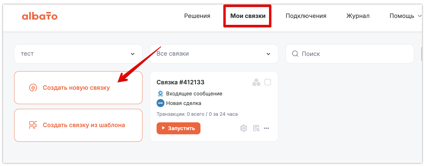 Зайди в раздел «Мои связки» → «Создать новую связку».