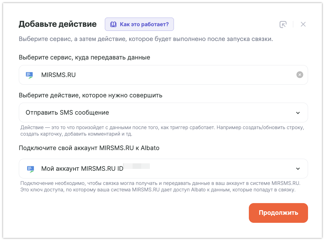 Как подключить MIRSMS к Albato.