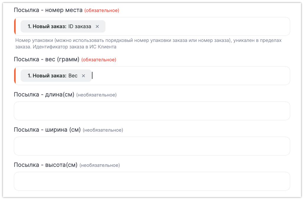 Посылка – Вес — параметр «Вес» из выпадающего списка ВКонтакте. Если посылка габаритная, добавьте длину, ширину и высоту.