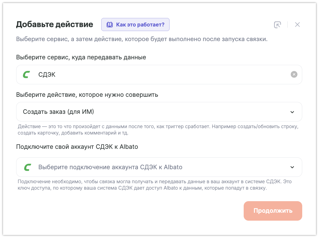 Как подключить СДЭК к Albato