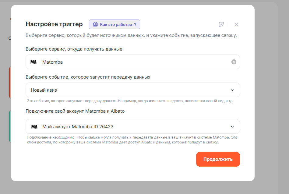 Подключение Matomba к Albato.