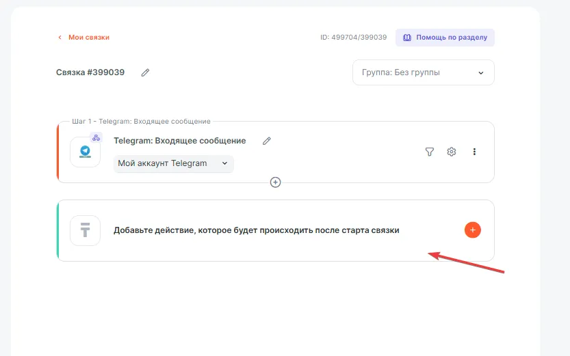 Выберите сервис Telegram , событие Входящее сообщение и подключение из списка (или создайте новое).