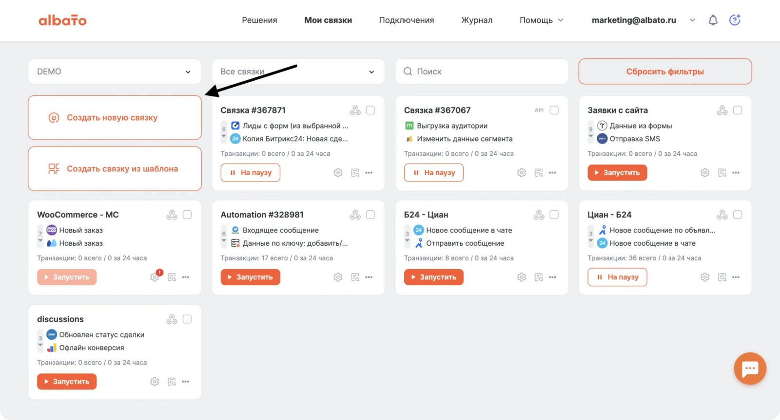 Зайдите в раздел Мои связки и нажмите Создать новую.