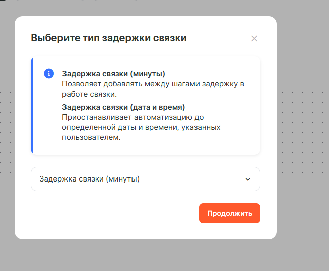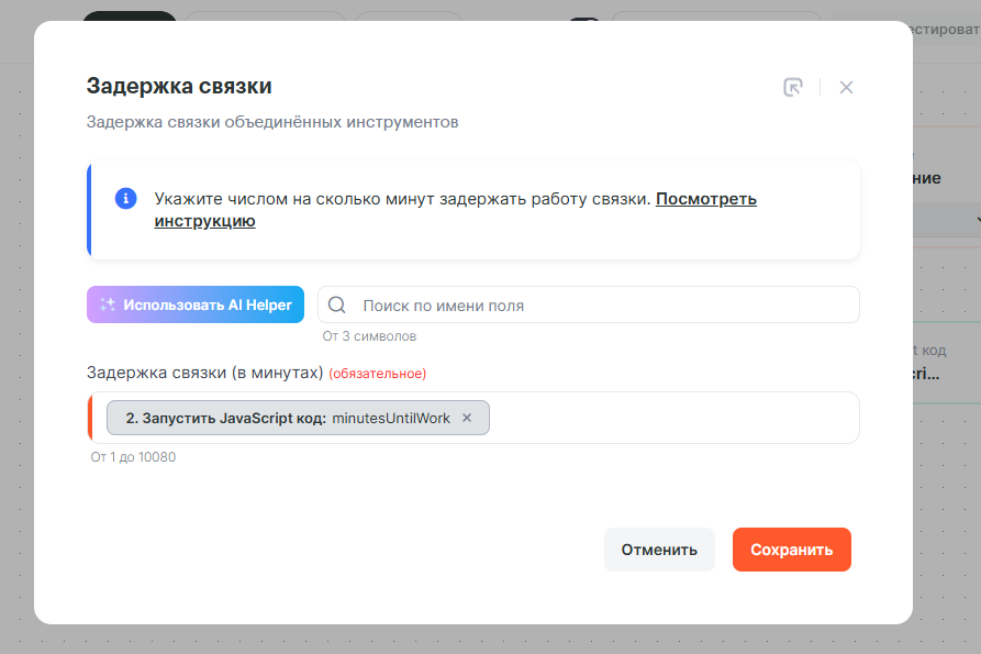 Теперь Добавим в связку инструмент Задержка связки (минуты)