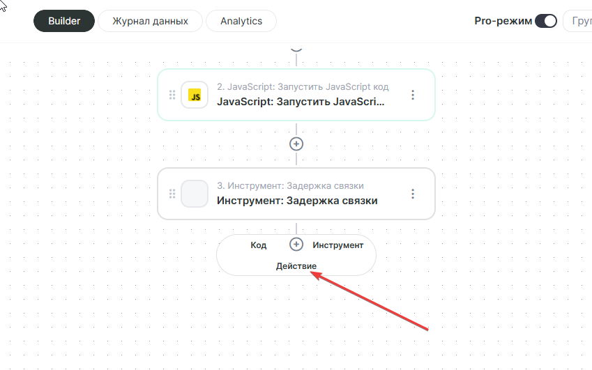 Для этого в промежуточных действиях будем использовать Java Script код.